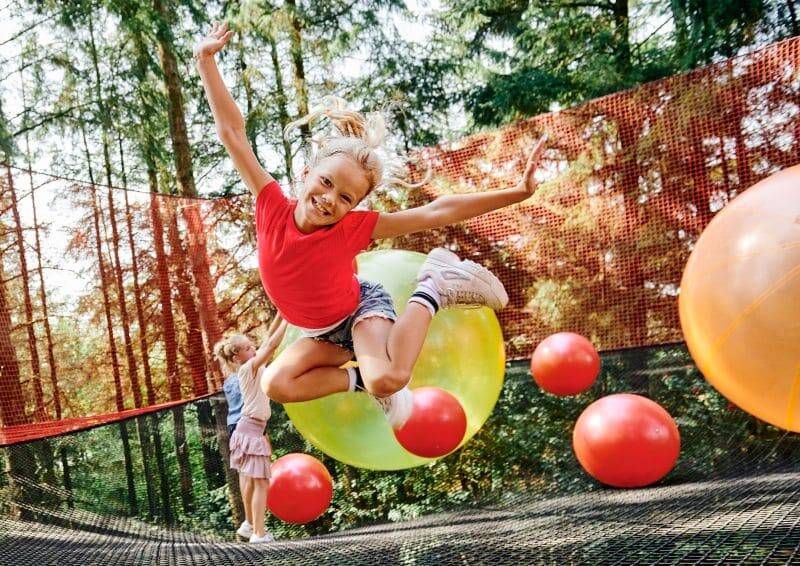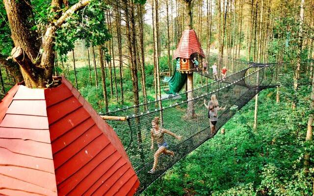 Erlebt ein aufregendes Abenteuer, bei dem ihr 110 Meter lange, frei hängende Netzbrücken zwischen den Baumwipfeln überwinden müsst. Zum Schluss habt ihr einen freien Blick auf eure Familie, die aufgeregt am Boden wartet, während ihr auf der neuen 20 Meter hohen Freefall-Rutsche des Parks eure Höchstgeschwindigkeit erreicht.