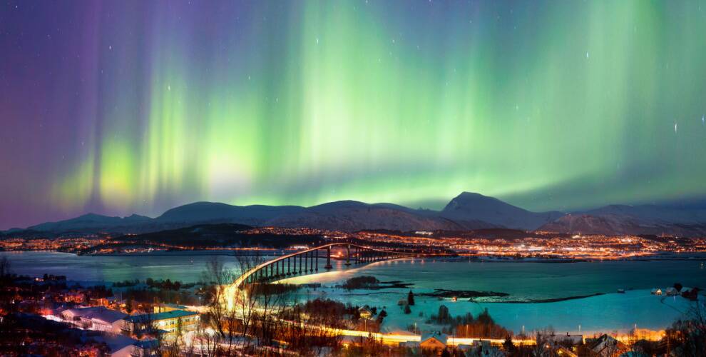 Eine der faszinierendsten Städte in Norwegen ist Tromsø. Wenn ihr Polarlichter sehen möchtet und die Kälte nicht scheut, seid ihr hier genau richtig. Im Sommer wird es hier immerhin angenehme 17° C warm und die Sonne geht nie unter. Wer gerne ausgeht, kann die Nacht also ganz einfach zum Tag machen. Touristen sollten Touristen unbedingt die Arktische Kathedrale der Stadt besuchen, ein architektonisches Highlight, das vor allem nachts Romantiker fasziniert, hier finden außerdem hin und wieder Konzerte statt. Sucht euch bei eurem Besuch zum Abschluss eines perfekten Tages den besten Aussichtspunkt in Tromsø und beobachtet die tanzenden Nordlichter.