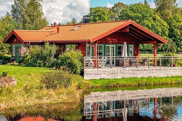 Neben dem eigenen Haus gibt es einen beeindruckenden Schaugarten und dieses wunderschöne Ferienhaus, das von malerischen Wiesen mit grasenden Kühen und Wald umgeben ist. Von der Holzterrasse des Hauses, die zu Ihrem Lieblingsplatz werden könnte, können Sie auf Ihren eigenen Teich blicken - oder entspannt auf ihm rudern.